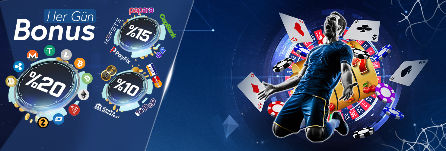Kripto Para Birimleri, Papara, Mefete, QR Kod, Cepbank, Kredi Kartı, Havale, Peppara ve Tumcash ile yapacağınız günlük para yatırma işlemlerinde bu bonustan yararlanabilirsiniz. Kolay çevrim şartlı Tümbet Para Yatırma Bonusundan günlük yapacağınız para yatırma işlemlerinde toplamda %45 oranında yararlanabilirsiniz.