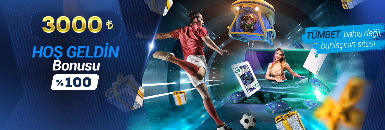 Tümbet %100 10000 TL Hoşgeldin bonusu kampanyası kapsamında yeni ve eski üyeleri ayırmadan herkesin yararlanabileceğini cömert ve kolay çevrim şartlı hoşgeldin bonusu kampanyalarından bir tanesidir. Siteye ilk para yatırma işleminde yararlanabileceğiniz bonus kampanyası ile kazanç sağlama şansınızı artırabilirsiniz. %100 Hoşgeldin bonus promosyonunu bahis, canlı bahis, casino ve canlı casino alanlarında kullanabilirsiniz. Tümbet Yeniden Hoşgeldin Bonusu kampanyası çevrim şartları; spor bahislerinde 1.30 oran x 10 katı, casino slot alanında 25 katı ve canlı casino alanında 40 katıdır.